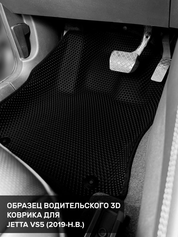 Автомобильные 3д коврики для Jetta VS5 (2019-н.в) в салон авто и багажник сделаны из инновационного полимерного материала EVA, изысканная структура в виде ячеек не дает воде, пыли и снегу разлетаться по салону машины и багажнику. 3д коврики зафиксированы на полу определенными клипсами, соответствующими Jetta VS5 (2019-н.в), и не двигаются в процессе езды.